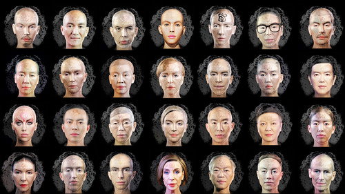 The underlying structure of the application Adobe Photoshop, popular software used for retouching and manipulating photographic images, is revealed by the representation of several procedural tools, such as the magic wand selector, the clone tool and the checkered backgrounds that connote transparency.