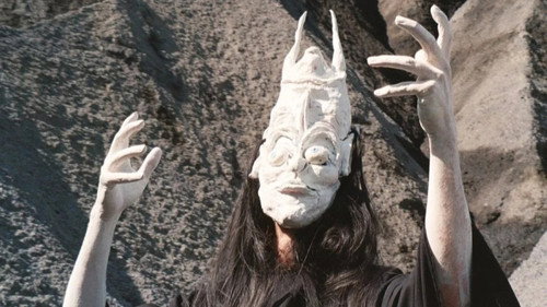 Aliens descend in crystal spaceships to make contact with people through guitar amp distortion and glowing animal skulls.